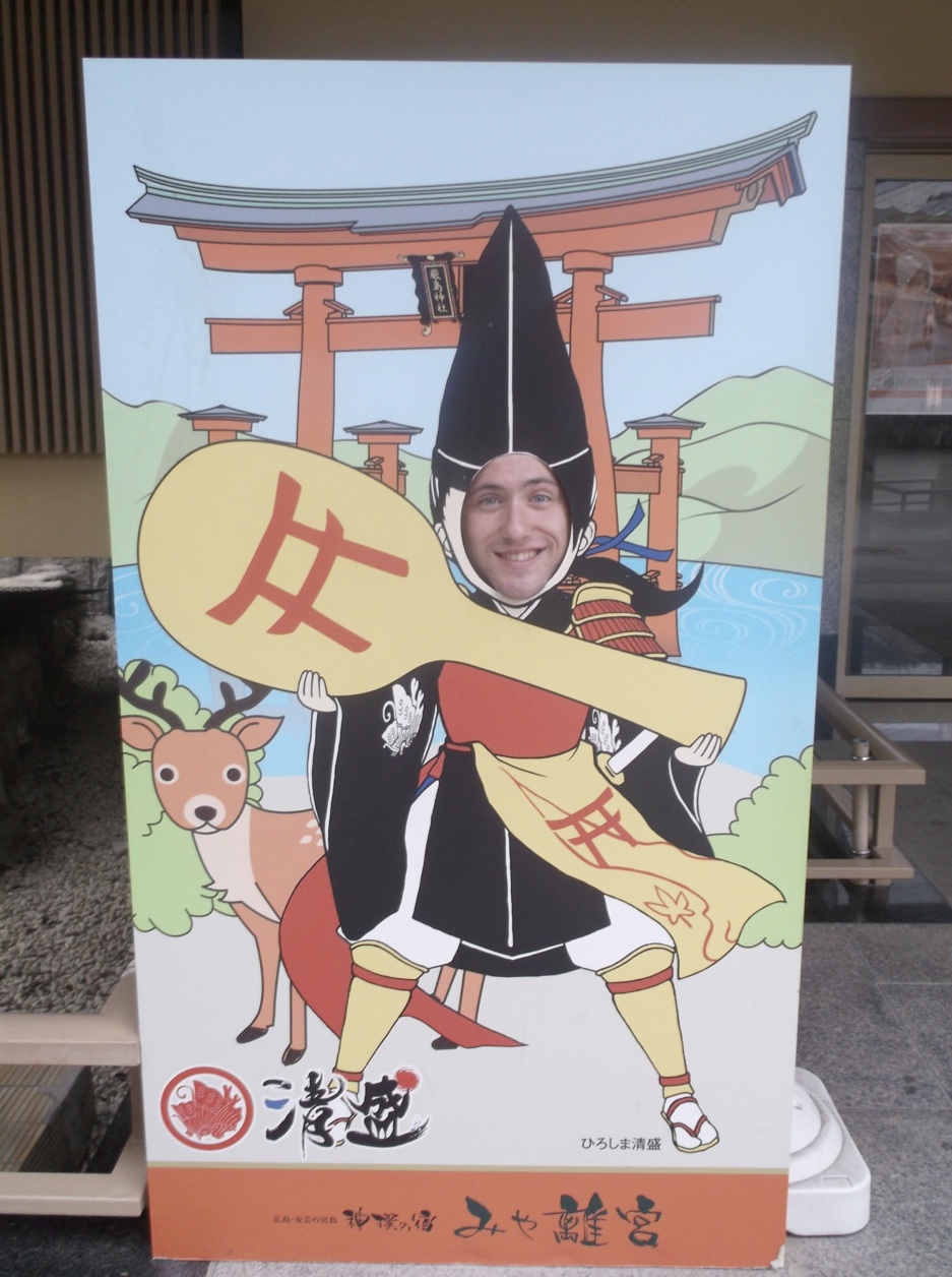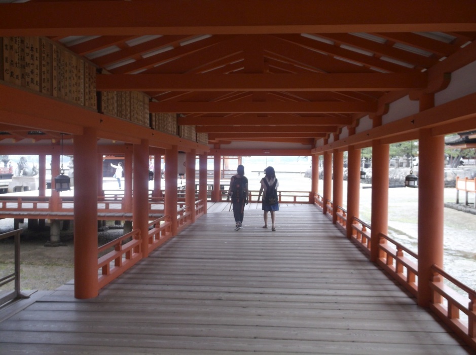 Finding a map of the area showed me the things that I had mostly come for; Itsukushima shrine and its torii gate. They are located on the waters and are designed to look as though they float on the surface, though as I had mentioned, the tide was low for me I was still eager to see the great craftsmanship. I opted to walk along the waterfront to the shrine. All around me I could smell food cooking and I became eager to try something. Miyajima is also partly famous for having oysters, which in the past I had had raw and not really enjoyed; but seeing a stall selling Curry Buns with three oysters baked inside, I simply could not resist. Although the typical “curry” flavour that you will find in Japan was actually imported from England, not India, and the bun is more like a crispy doughnut, the oysters were 100% Japanese authentic, and – just like most Japanese food – very fresh and together the whole thing was perfect.