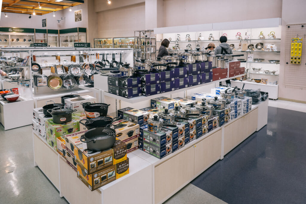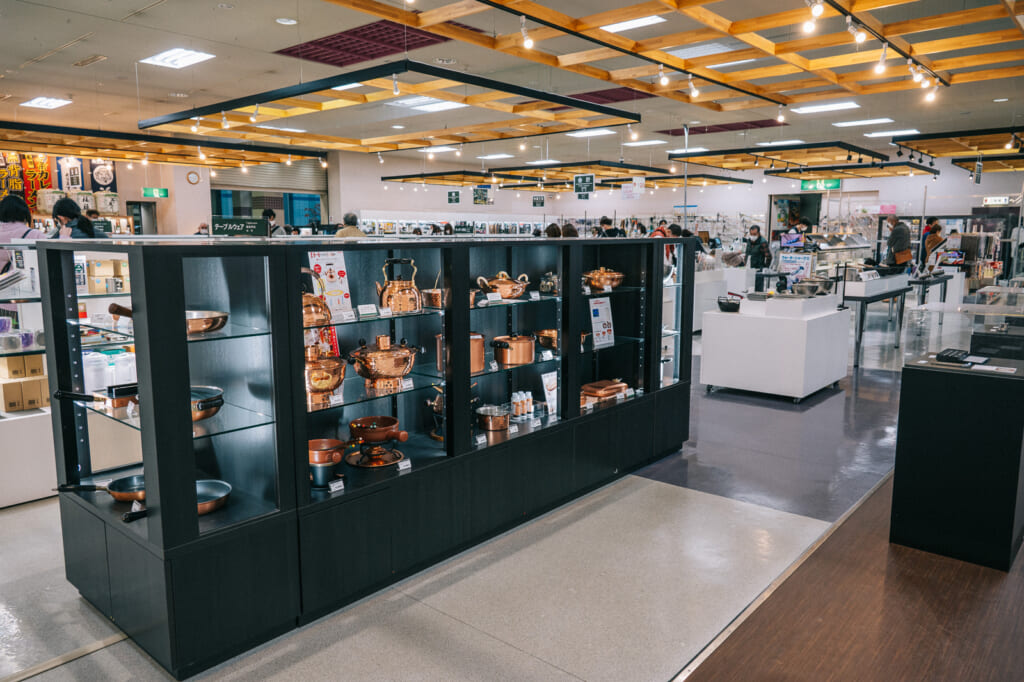 Make sure you make a final stop at the Tsubamesanjo Regional Industry Promotion Center before leaving the area. Not only is there a large exhibition area showcasing the various metalworking products made in the area, but there is also a huge shop selling many of them. Pick up gifts and souvenirs from household utensils and small tools to works of art like copper kettles and tea accessories. If you didn’t have time or space to buy gifts for yourself or others as you traveled around Tsubame and Sanjo, you don’t need to go home empty-handed. The center also has free wi-fi and an information center where you can get help in English and is just minutes from Tsubamesanjo Station.