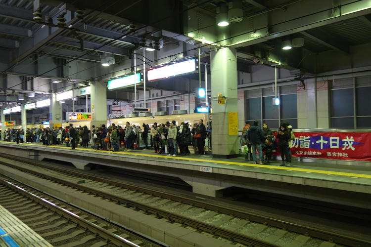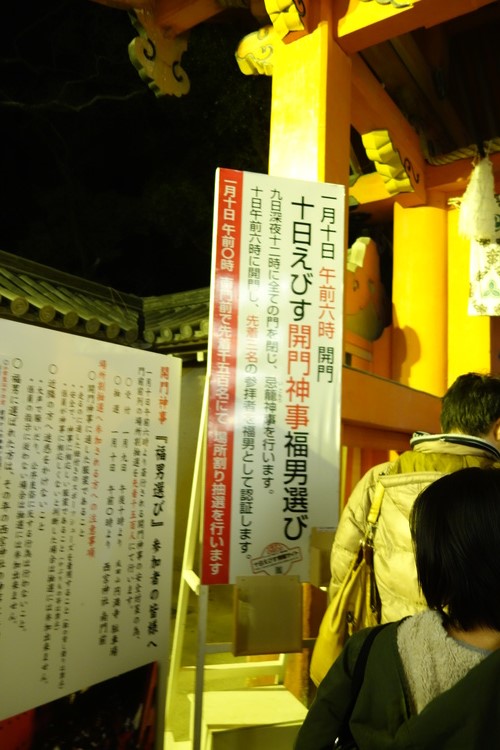 Touka-Ebisu is definitely worth visiting, but it may be wise to pick non-peak hours or a smaller Ebisu Shrine that is also hosting the festival, unless you are very determined to see the big tuna or even the Lucky Men race. Lining up in the cold for an hour however was no joke!