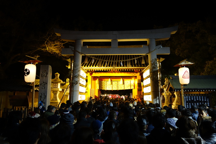 Touka-Ebisu (十日えびす) is an annual festival that celebrates the New Year and Ebisu god at Nishinomiya Shrine (西宮神社) in Kobe. Though the name points to the date 10th (“十日”) and you may find that most of the activities take place on that day, Touka-Ebisu in fact encompasses three eventful days starting from January 9th. To believers, especially fishermen whom are said to be protected by Ebisu, as well as business owners and those who need a bit of extra luck for tests or exams, these three days are equally important.