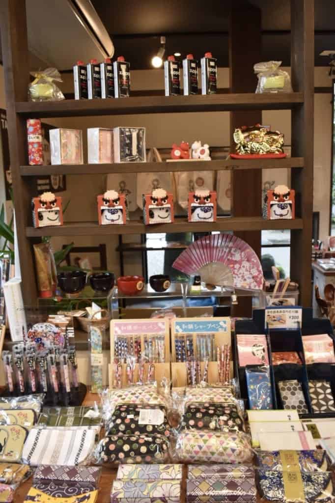 Unfortunately, the gate and the offering hall collapsed in the earthquake of 2016 and restoration work is currently underway. You can still walk around the site and soak up the atmosphere. In Monzen-machi next to Aso Shrine, numerous shops and small restaurants provide welcome rest stops from sightseeing and you can find some unique, reasonably-priced gifts down the narrow alleys. We found a small stationery shop with a range of colorful stationery and Japanese fans.
