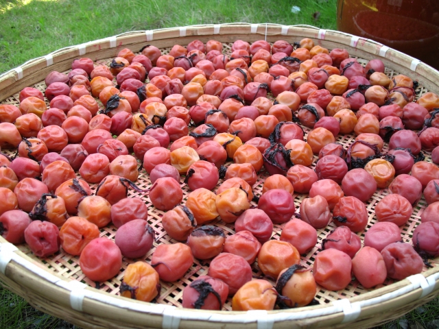 Ume is Japanese for plum and together with boshi generally means pickled or dried plum. Although umeboshi can be extremely sour due to their high acidity whether they are eaten alone as a healthy snack, at the centre of a rice-ball, or in the middle of a box of rice, umeboshi are a veritable power-pack of healthy dietary components. Containing a touch of protein, one of the most fundamentally important parts of the diet, together with a good dose of sodium, potassium, and even a good level of dietary fiber, umeboshi also provide a great vitamin source too Vitamins A, B1, and B2.