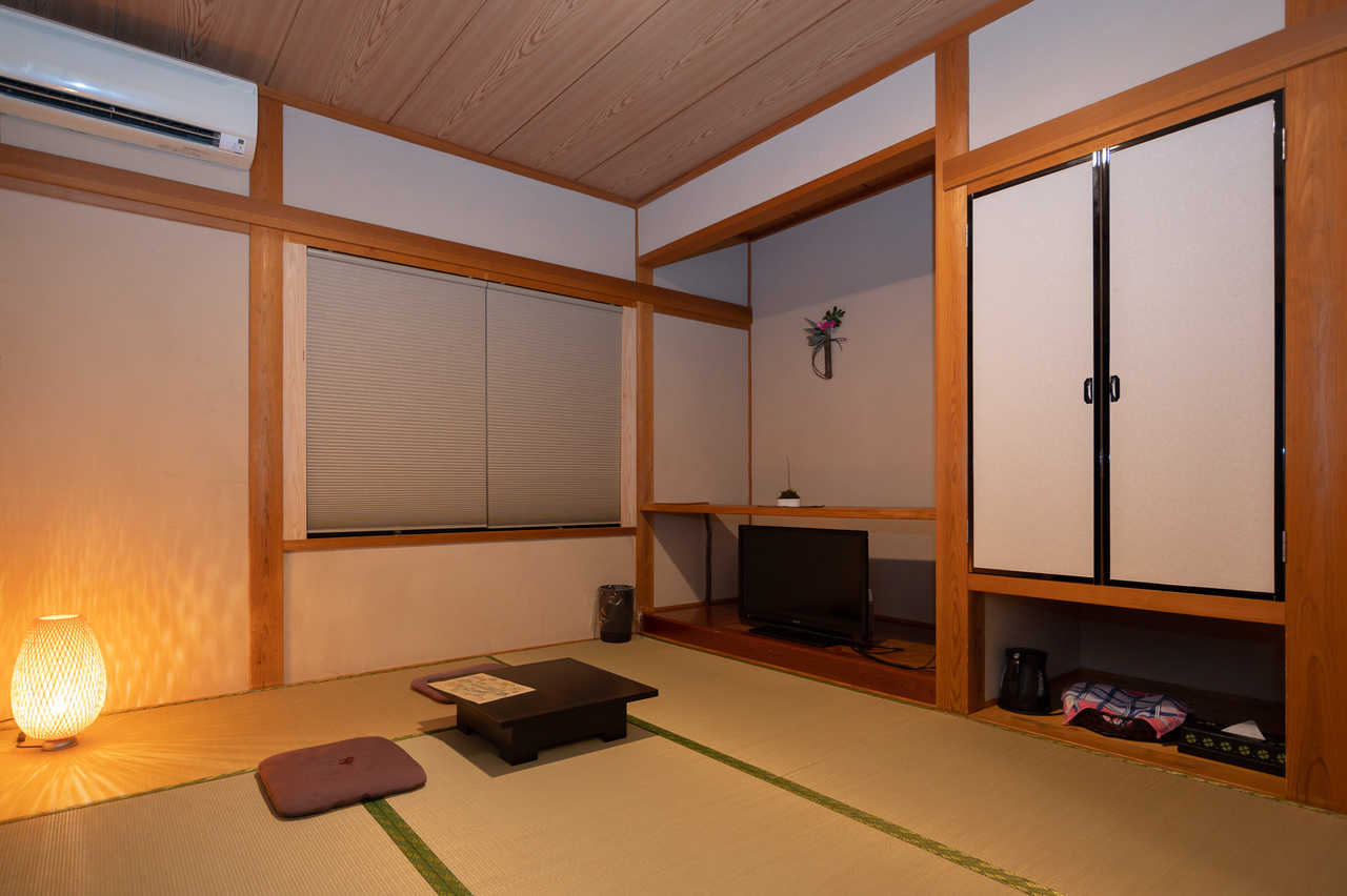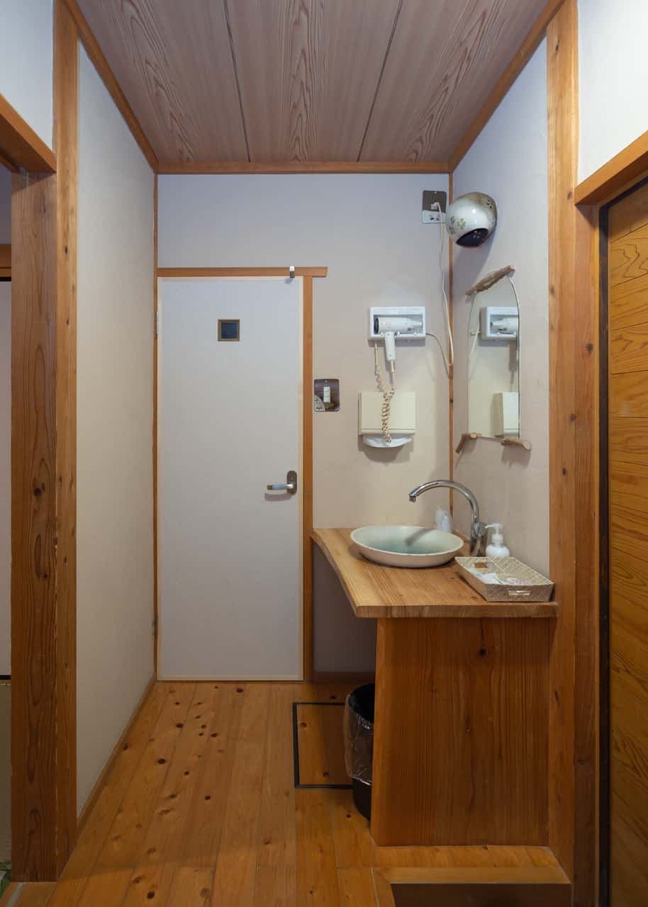 Rooms at Zenzo are not contained in a single large building but a collection of smaller buildings, making the ryokan feel like you are staying in a private cottage in the forest. Buildings are separated by private outdoor baths, screened off by wooden fences for privacy. The room itself is cozy, enough space for a small table, TV, and a place to lie out your futon for the night (which the staff takes care of discreetly while you dine). An area separated by a shoji sliding door contains a toilet room, sink area, and a changing room leading out to the bath, which also has a safe and mini-fridge.
