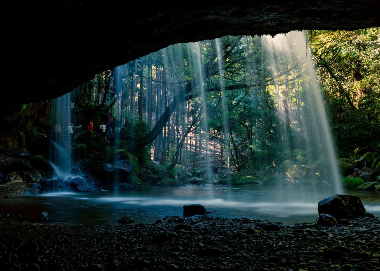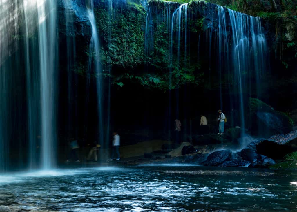 The falls were formed 90,000 years ago when the super eruption of the surrounding volcanoes formed the Aso Caldera, one of the largest volcanic calderas in the world and the central attraction for visitors to northern Kumamoto Prefecture. The spring waters flowed over the structure, eventually eroding a hollow space behind the falls, which is one of its hallmarks. Visitors can photograph the falls from both the front and the back, enjoying the view that changes with each of Japan’s distinct four seasons.