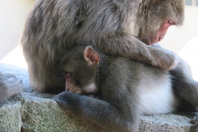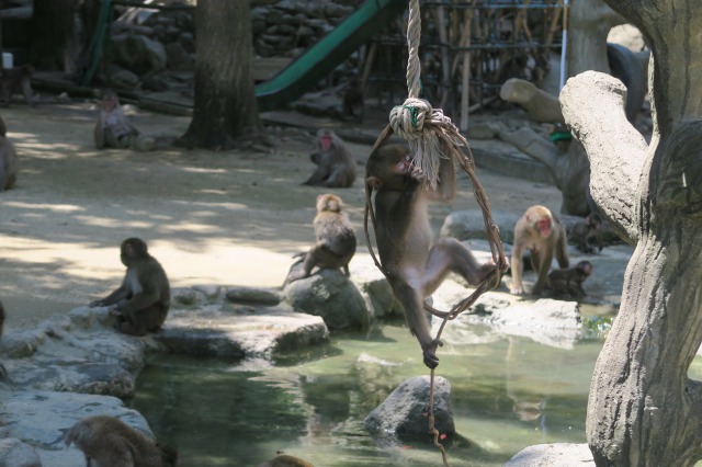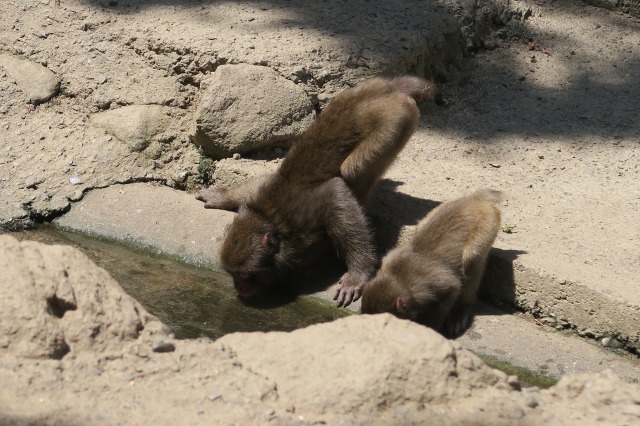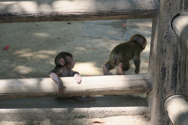 Luckily, I had arrived during feeding time, just after noon, at which point a mass of monkeys invaded the main area, each grabbing fist-fulls of grains, while others sipped water from the nearby pool. But perhaps the best sight to see was the way the little monkeys played with each other and managed to get their hands on random food that no other monkey seemed to be eating.