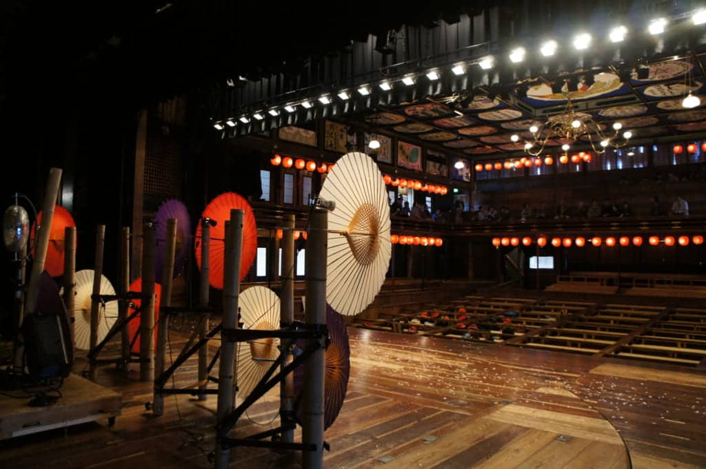 Despite being a small theater, the builders of Yachiyoza Theater equipped it with state-of-the-art technology for the early 20th century. Go under the stage to view the rails on which the stage revolved, allowing a second scene to be prepared in advance without interrupting the performance.