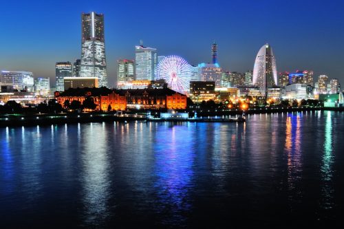 First, let’s visit the Minato Mirai area for a view of Yokohama’s iconic skyline framing majestic Mt. Fuji. Minato Mirai was the location of the first port opened to foreign trade and shipping after the Meiji Restoration of 1868. Visit the area at night for an impressive and romantic view, with the lights of the skyscrapers and ferris wheel lit in bright colors against the night sky and reflected on the bay.