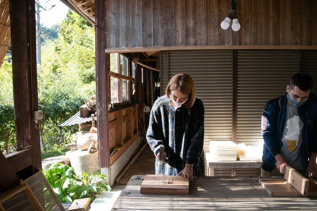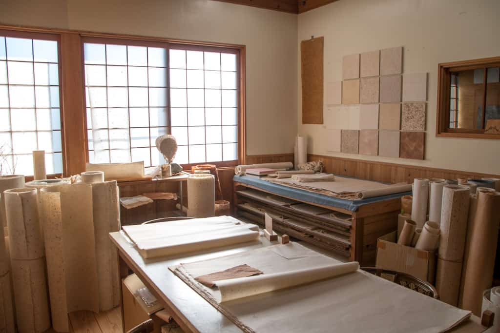 In recent years, Kamikoya has become a popular destination with regular tourists and artists alike, who make their journey here to study the art of traditional Japanese paper (washi) making alongside the Uitenboogaart family. As I come to learn, this place is particularly famous. Much of the paper they make here collaborates with architects, luxury hotels, and restaurants to provide interior fittings like shoji (sliding doors), wallpaper, and light shades. The workshop also has an online relationship with legendary Japanese architect Kengo Kuma, the man behind the new Olympic Stadium, and countless other iconic structures.